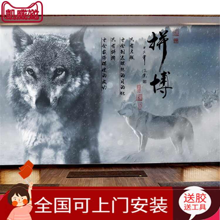 北歐手繪霸氣野狼黑狼惡狼壁紙客廳電視背景墻紙無縫定制壁畫墻布露天拍賣 露天拍賣